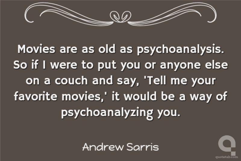 Movies are as old as psychoanalysis. So if I were to put you or anyone else on a couch and say, 'Tell me your favorite movies,' it would be a way of psychoanalyzing you.