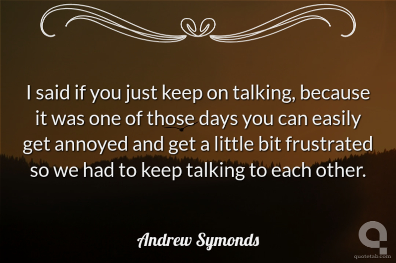 I said if you just keep on talking, because it was one of those days you can easily get annoyed and get a little bit frustrated so we had to keep talking to each other.