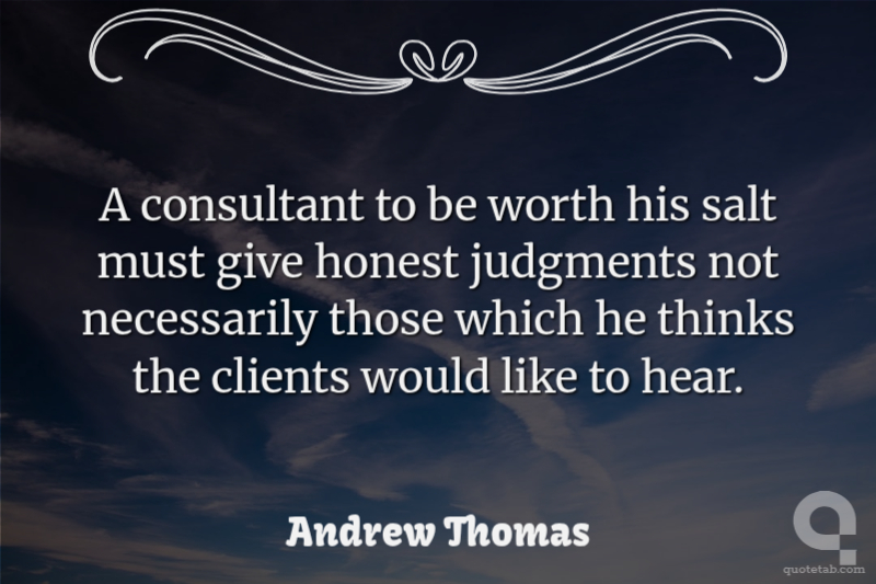 A consultant to be worth his salt must give honest judgments not necessarily those which he thinks the clients would like to hear.