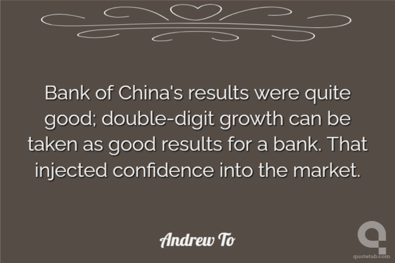 Bank of China's results were quite good; double-digit growth can be taken as good results for a bank. That injected confidence into the market.