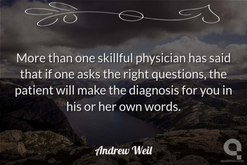 More than one skillful physician has said that if one asks the right questions, the patient will make the diagnosis for you in his or her own words.