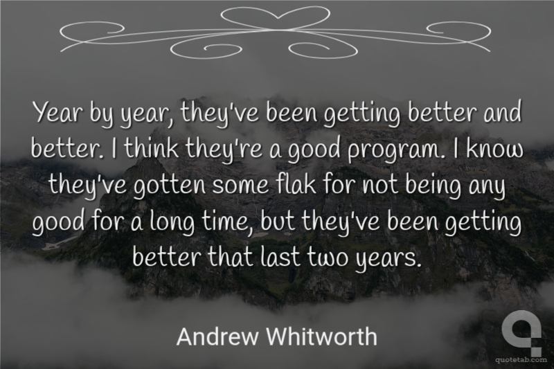 Year by year, they've been getting better and better. I think they're a good program. I know they've gotten some flak for not being any good for a long time, but they've been getting better that last two years.
