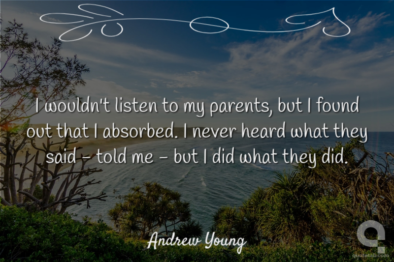 I wouldn't listen to my parents, but I found out that I absorbed. I never heard what they said - told me - but I did what they did.