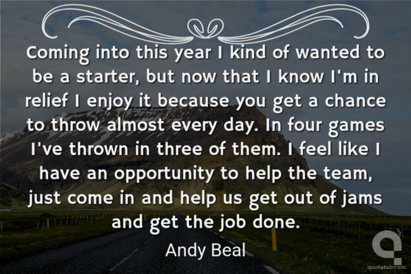 Coming into this year I kind of wanted to be a starter, but now that I know I'm in relief I enjoy it because you get a chance to throw almost every day. In four games I've thrown in three of them. I feel like I have an opportunity to help the team, just come in and help us get out of jams and get the job done.