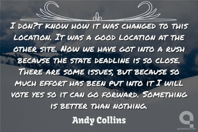 I don?t know how it was changed to this location. It was a good location at the other site. Now we have got into a rush because the state deadline is so close. There are some issues, but because so much effort has been put into it I will vote yes so it can go forward. Something is better than nothing.