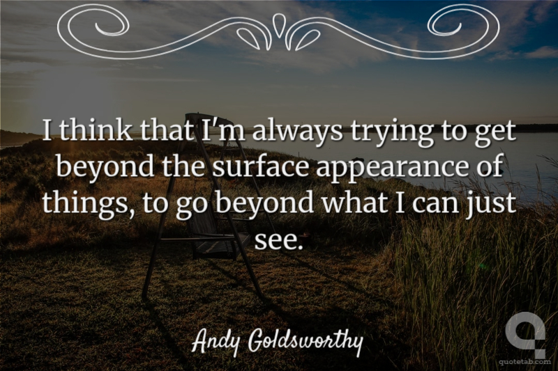 I think that I'm always trying to get beyond the surface appearance of things, to go beyond what I can just see.