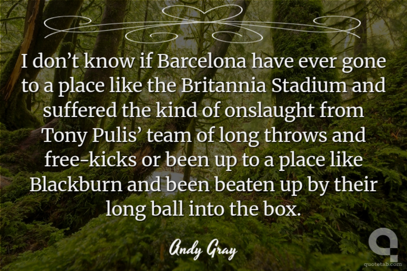 I don’t know if Barcelona have ever gone to a place like the Britannia Stadium and suffered the kind of onslaught from Tony Pulis’ team of long throws and free-kicks or been up to a place like Blackburn and been beaten up by their long ball into the box.