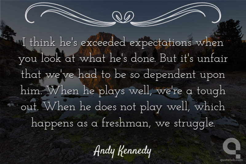 I think he's exceeded expectations when you look at what he's done. But it's unfair that we've had to be so dependent upon him. When he plays well, we're a tough out. When he does not play well, which happens as a freshman, we struggle.