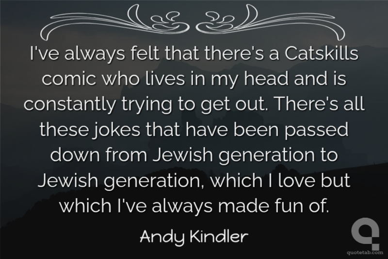 I've always felt that there's a Catskills comic who lives in my head and is constantly trying to get out. There's all these jokes that have been passed down from Jewish generation to Jewish generation, which I love but which I've always made fun of.