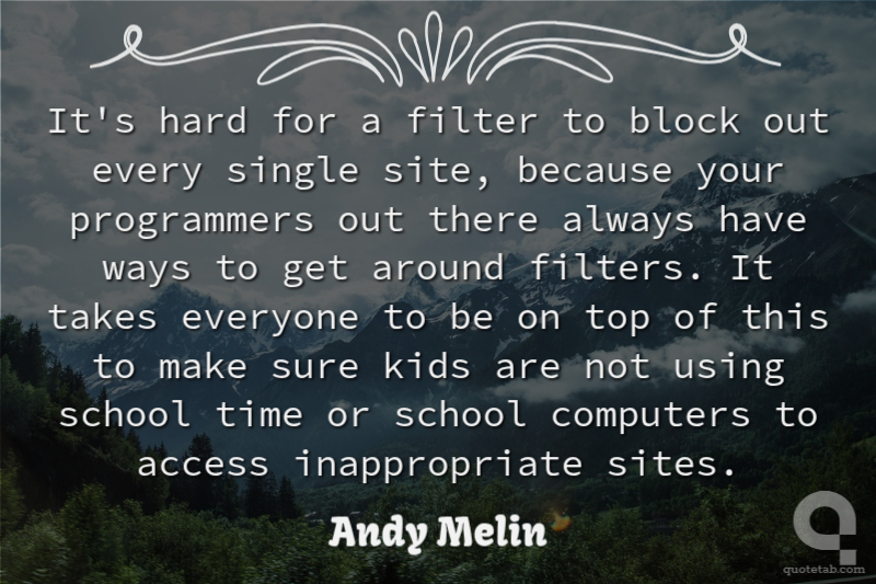 It's hard for a filter to block out every single site, because your programmers out there always have ways to get around filters. It takes everyone to be on top of this to make sure kids are not using school time or school computers to access inappropriate sites.