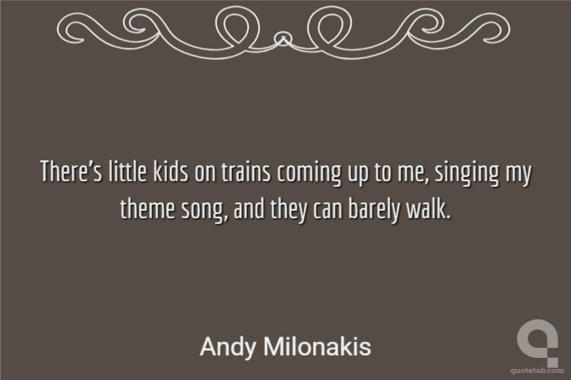 There's little kids on trains coming up to me, singing my theme song, and they can barely walk.