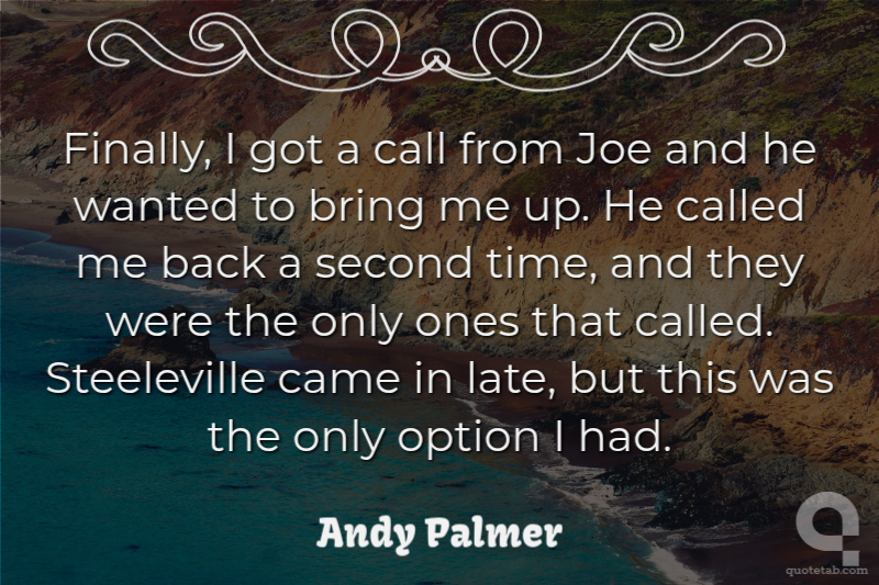 Finally, I got a call from Joe and he wanted to bring me up. He called me back a second time, and they were the only ones that called. Steeleville came in late, but this was the only option I had.