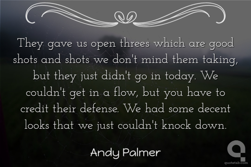 They gave us open threes which are good shots and shots we don't mind them taking, but they just didn't go in today. We couldn't get in a flow, but you have to credit their defense. We had some decent looks that we just couldn't knock down.