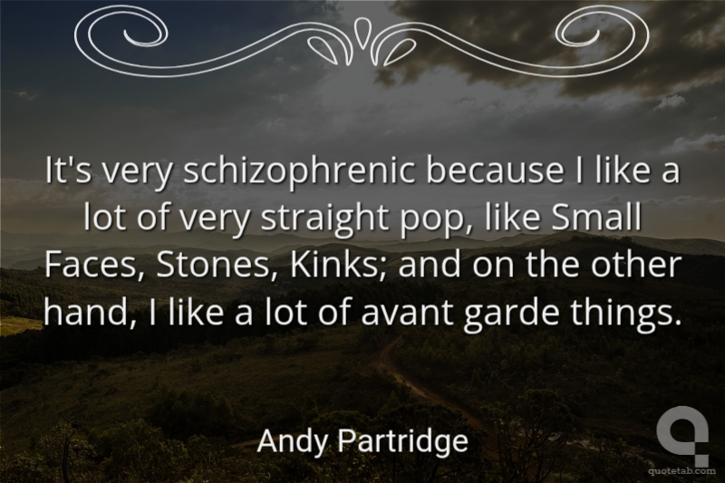 It's very schizophrenic because I like a lot of very straight pop, like Small Faces, Stones, Kinks; and on the other hand, I like a lot of avant garde things.
