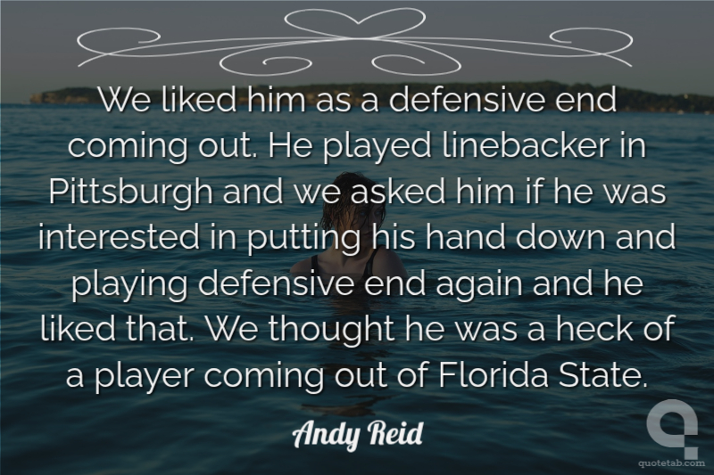 We liked him as a defensive end coming out. He played linebacker in Pittsburgh and we asked him if he was interested in putting his hand down and playing defensive end again and he liked that. We thought he was a heck of a player coming out of Florida State.