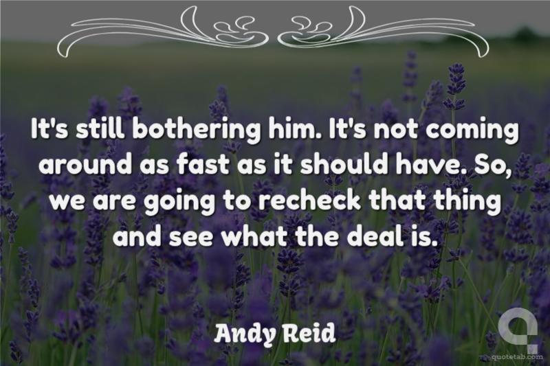 It's still bothering him. It's not coming around as fast as it should have. So, we are going to recheck that thing and see what the deal is.