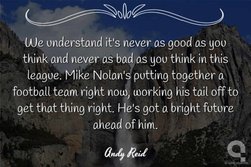 We understand it's never as good as you think and never as bad as you think in this league. Mike Nolan's putting together a football team right now, working his tail off to get that thing right. He's got a bright future ahead of him.