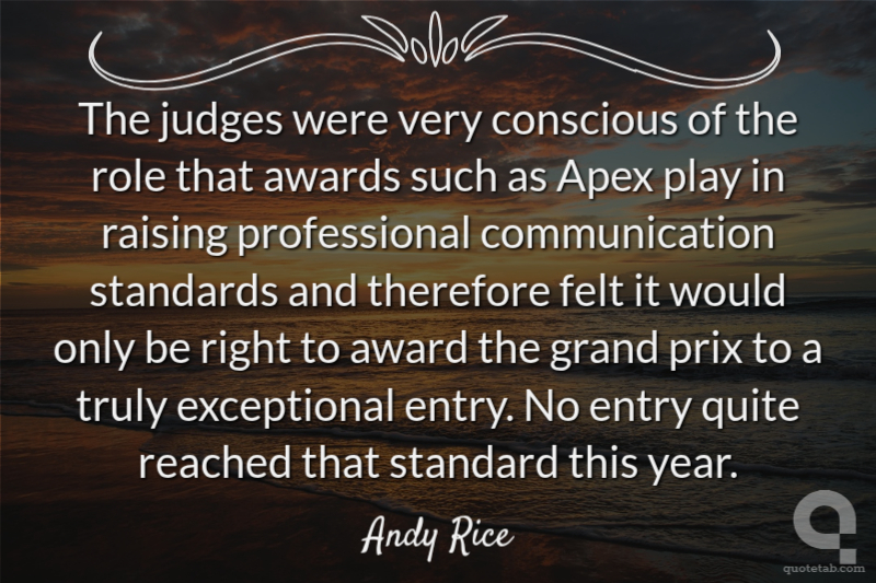 apex award awards communication conscious entry felt grand judges quite raising reached role standard standards therefore truly