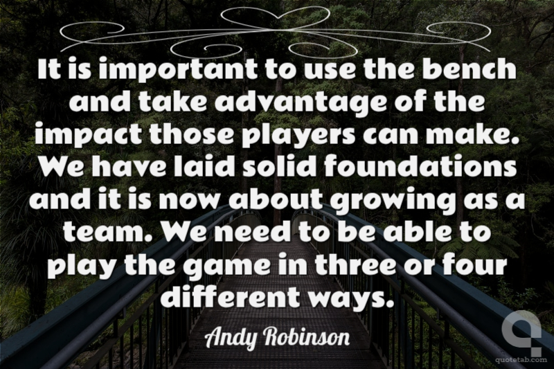 It is important to use the bench and take advantage of the impact those players can make. We have laid solid foundations and it is now about growing as a team. We need to be able to play the game in three or four different ways.