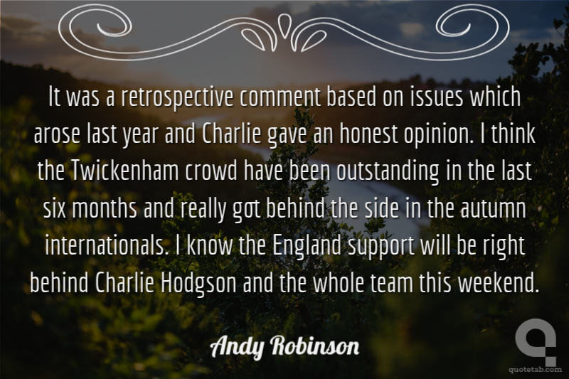 It was a retrospective comment based on issues which arose last year and Charlie gave an honest opinion. I think the Twickenham crowd have been outstanding in the last six months and really got behind the side in the autumn internationals. I know the England support will be right behind Charlie Hodgson and the whole team this weekend.