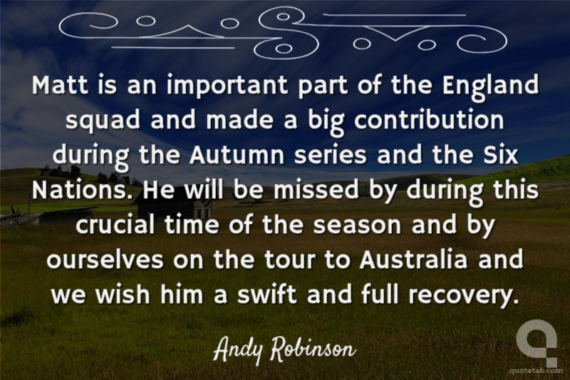 Matt is an important part of the England squad and made a big contribution during the Autumn series and the Six Nations. He will be missed by during this crucial time of the season and by ourselves on the tour to Australia and we wish him a swift and full recovery.