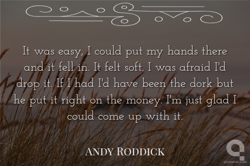 It was easy, I could put my hands there and it fell in. It felt soft. I was afraid I'd drop it. If I had I'd have been the dork but he put it right on the money. I'm just glad I could come up with it.