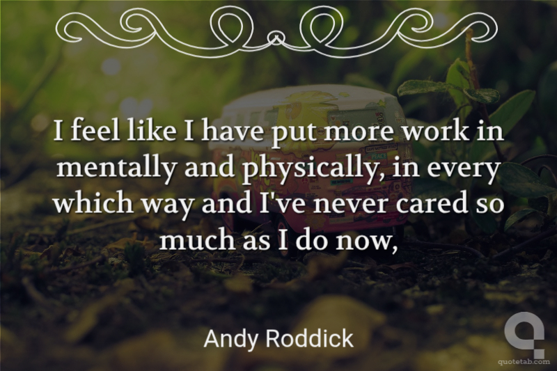I feel like I have put more work in mentally and physically, in every which way and I've never cared so much as I do now,
