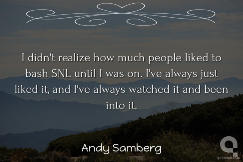 I didn't realize how much people liked to bash SNL until I was on. I've always just liked it, and I've always watched it and been into it.