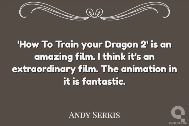 'How To Train your Dragon 2' is an amazing film. I think it's an extraordinary film. The animation in it is fantastic.