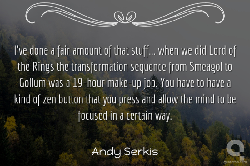 I've done a fair amount of that stuff... when we did Lord of the Rings the transformation sequence from Smeagol to Gollum was a 19-hour make-up job. You have to have a kind of zen button that you press and allow the mind to be focused in a certain way.