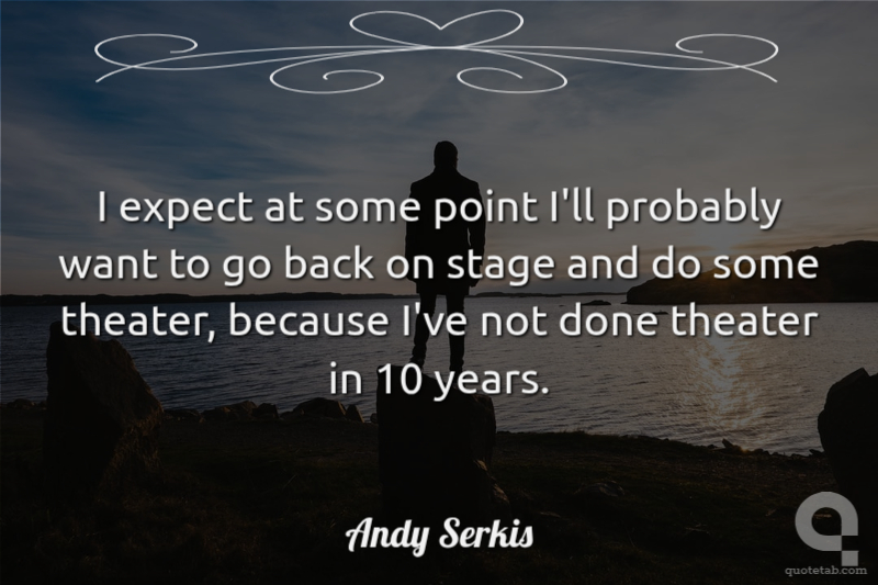 I expect at some point I'll probably want to go back on stage and do some theater, because I've not done theater in 10 years.