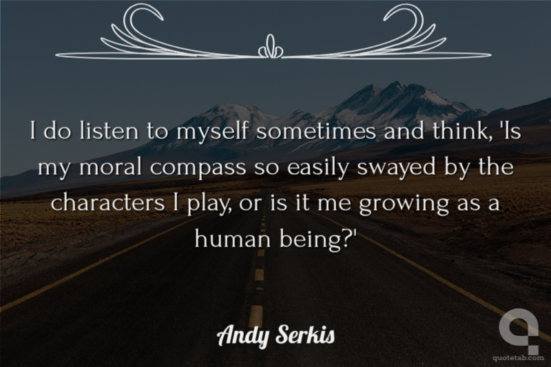 I do listen to myself sometimes and think, 'Is my moral compass so easily swayed by the characters I play, or is it me growing as a human being?'