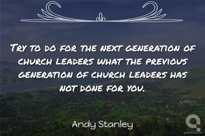 Try to do for the next generation of church leaders what the previous generation of church leaders has not done for you.
