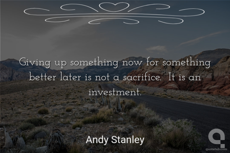 Giving up something now for something better later is not a sacrifice. It is an investment.