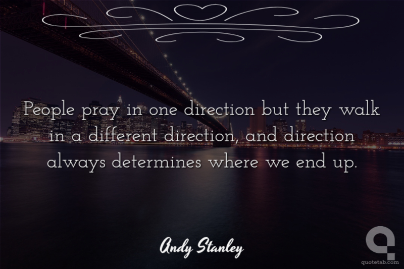 People pray in one direction but they walk in a different direction, and direction always determines where we end up.