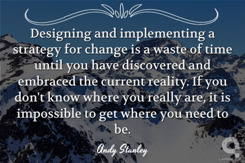 Designing and implementing a strategy for change is a waste of time until you have discovered and embraced the current reality. If you don't know where you really are, it is impossible to get where you need to be.