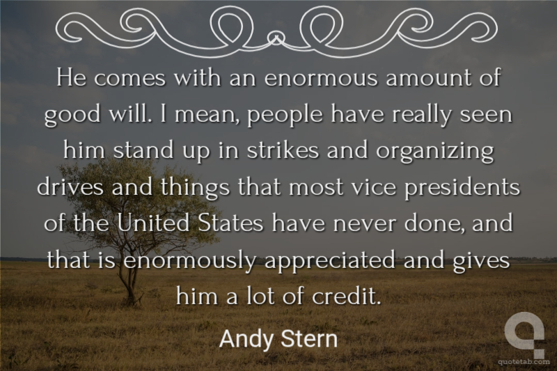 He comes with an enormous amount of good will. I mean, people have really seen him stand up in strikes and organizing drives and things that most vice presidents of the United States have never done, and that is enormously appreciated and gives him a lot of credit.