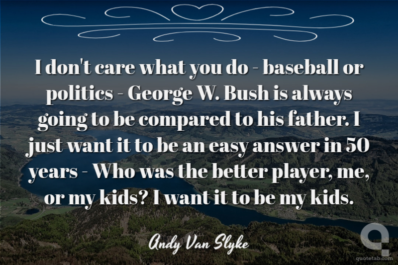I don't care what you do - baseball or politics - George W. Bush is always going to be compared to his father. I just want it to be an easy answer in 50 years - Who was the better player, me, or my kids? I want it to be my kids.