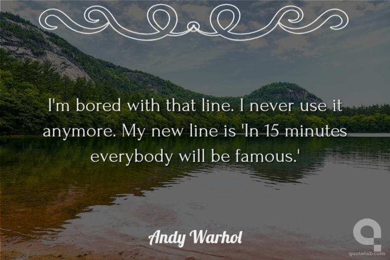 I'm bored with that line. I never use it anymore. My new line is 'In 15 minutes everybody will be famous.'