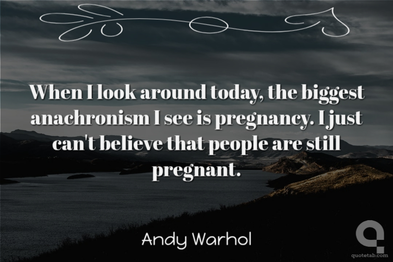 When I look around today, the biggest anachronism I see is pregnancy. I just can't believe that people are still pregnant.