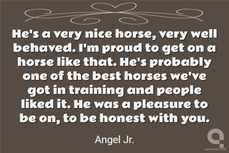 He's a very nice horse, very well behaved, ... I'm proud to get on a horse like that. He's probably one of the best horses we've got in training and people liked it. He was a pleasure to be on, to be honest with you.
