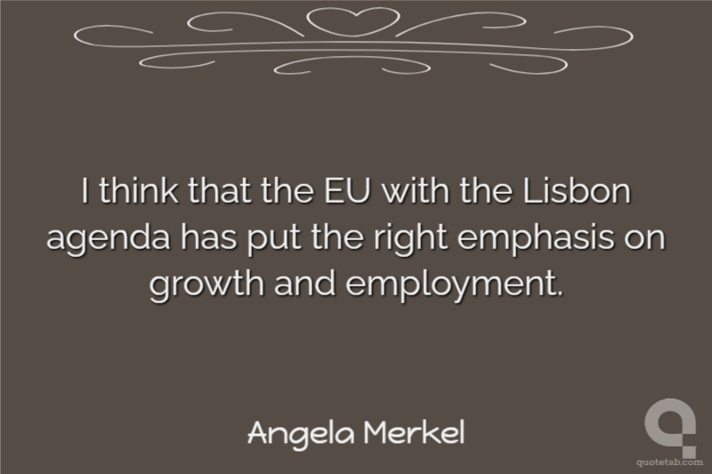 I think that the EU with the Lisbon agenda has put the right emphasis on growth and employment.