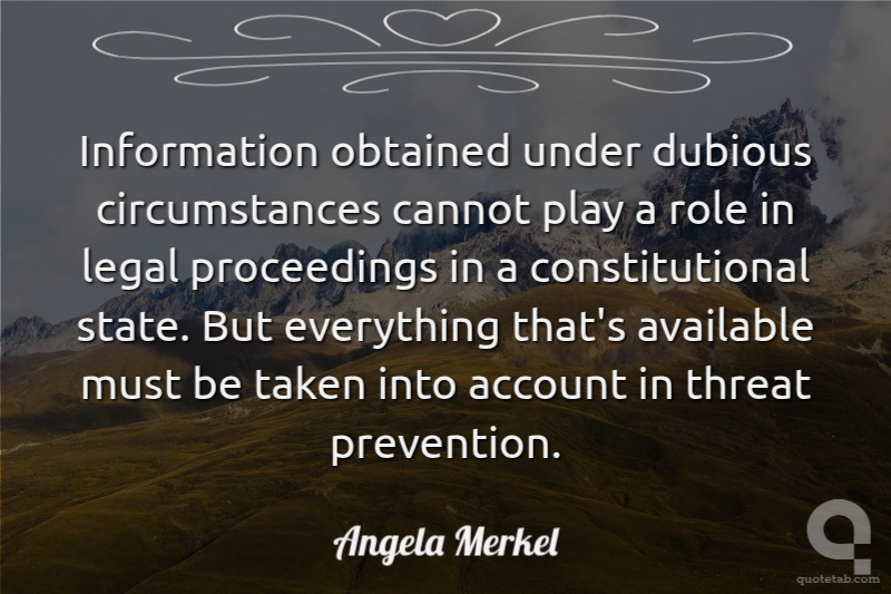 Information obtained under dubious circumstances cannot play a role in legal proceedings in a constitutional state. But everything that's available must be taken into account in threat prevention.