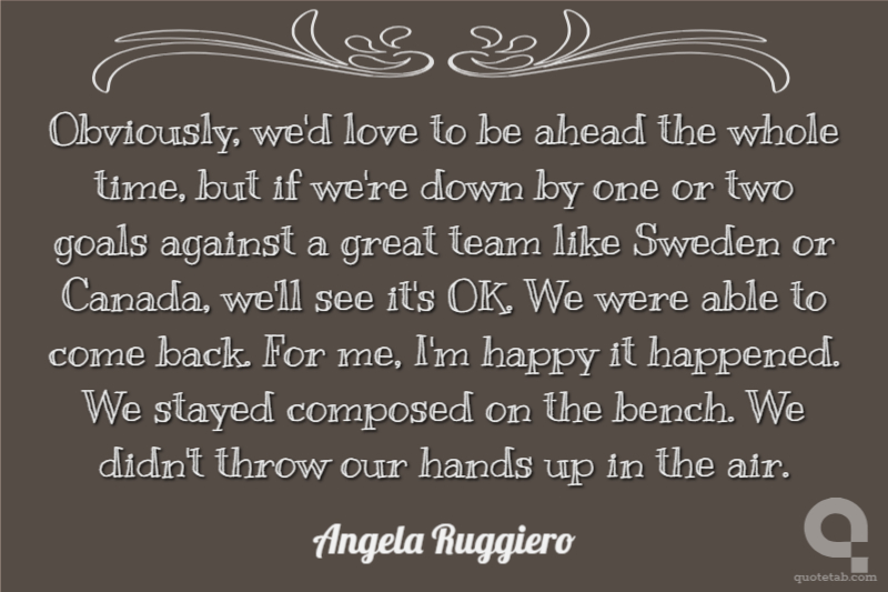 Obviously, we'd love to be ahead the whole time, but if we're down by one or two goals against a great team like Sweden or Canada, we'll see it's OK. We were able to come back. For me, I'm happy it happened. We stayed composed on the bench. We didn't throw our hands up in the air.