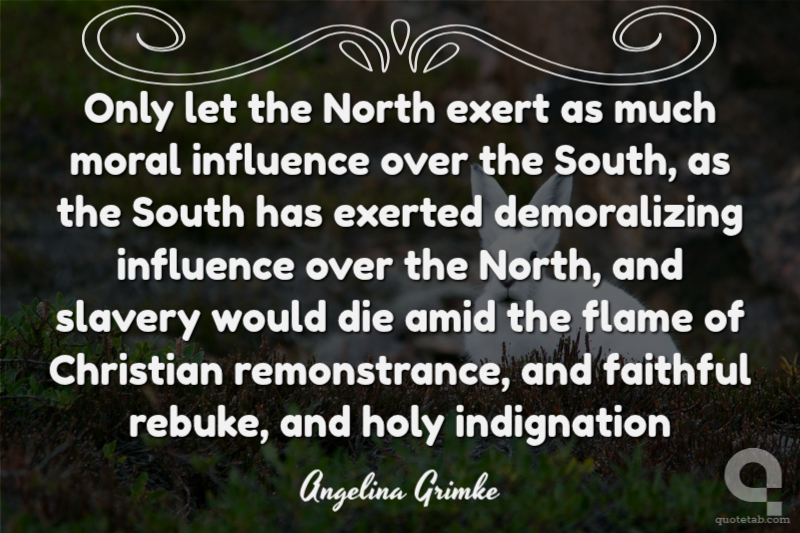 Only let the North exert as much moral influence over the South, as the South has exerted demoralizing influence over the North, and slavery would die amid the flame of Christian remonstrance, and faithful rebuke, and holy indignation