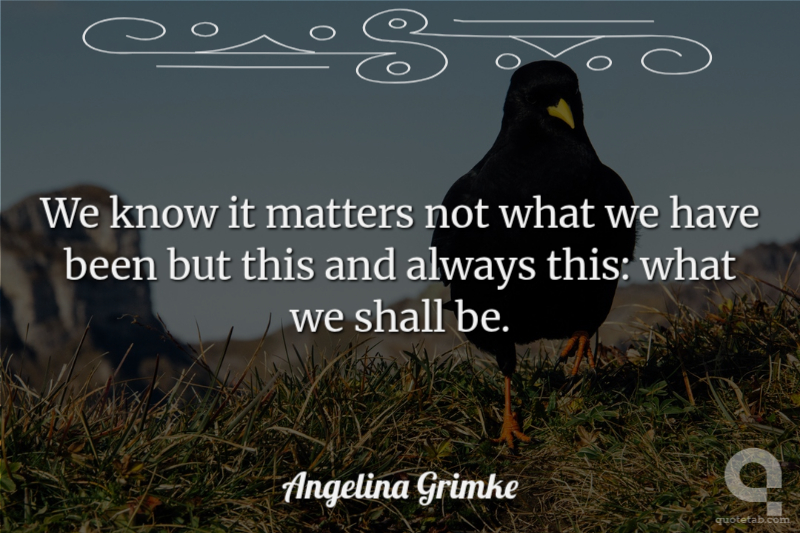 When human beings are regarded as moral beings, sex, instead of being enthroned upon the summit, administering upon rights and responsibilities, sinks into insignificance and nothingness. My doctrine then is, that whatever it is morally right for man to do, it is morally right for woman to do. Our duties originate, not from difference of sex, but from the diversity of our relations in life, the various gifts and talents committed to our care, and the different eras in which we live.