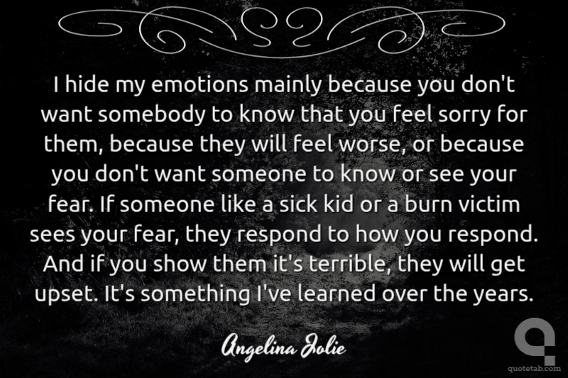 I hide my emotions mainly because you don't want somebody to know that you feel sorry for them, because they will feel worse, or because you don't want someone to know or see your fear. If someone like a sick kid or a burn victim sees your fear, they respond to how you respond. And if you show them it's terrible, they will get upset. It's something I've learned over the years.
