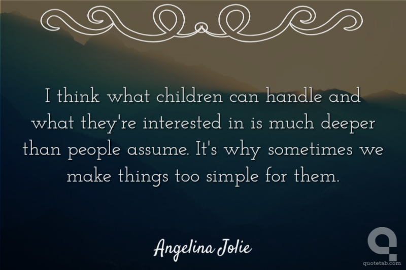 I think what children can handle and what they're interested in is much deeper than people assume. It's why sometimes we make things too simple for them.