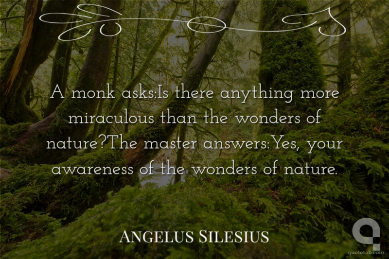 A monk asks:Is there anything more miraculous than the wonders of nature?The master answers:Yes, your awareness of the wonders of nature.