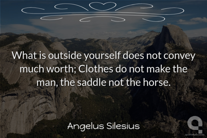 What is outside yourself does not convey much worth; Clothes do not make the man, the saddle not the horse.